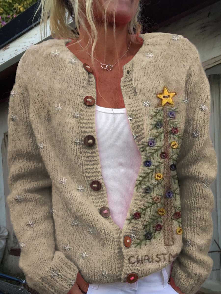 Retro Christmas Tree Casual Long Sleeve T-Shirt