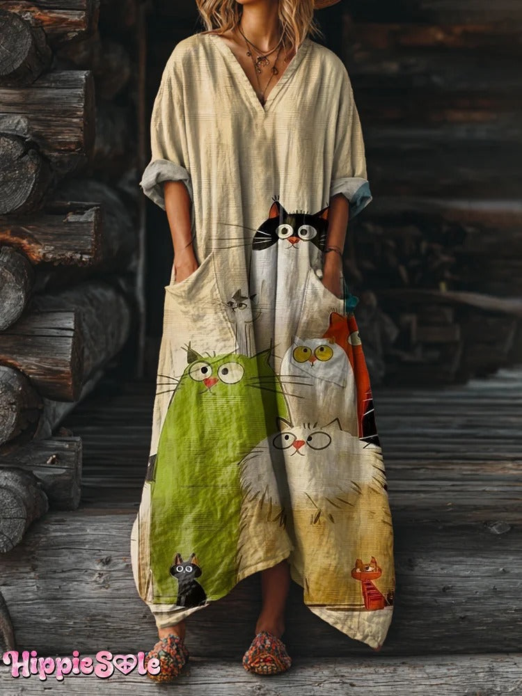 Women's Cute Cat Art Print Casual Long Sleeve T-Shirt